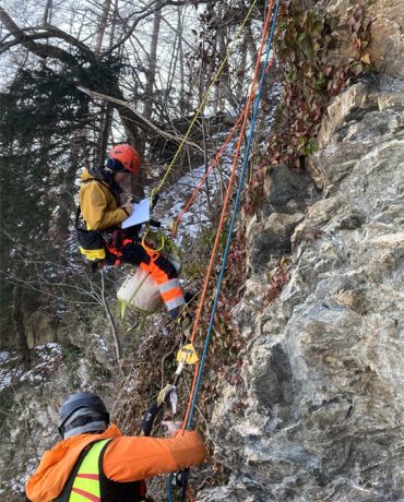 Wir sind bei Ereignissen vor Ort. Für Sie gehen wir gerne an die Felswand, bewerten Risiken, planen und begleiten Sofortmassnahmen, Sicherungs- und Sanierungsarbeiten.